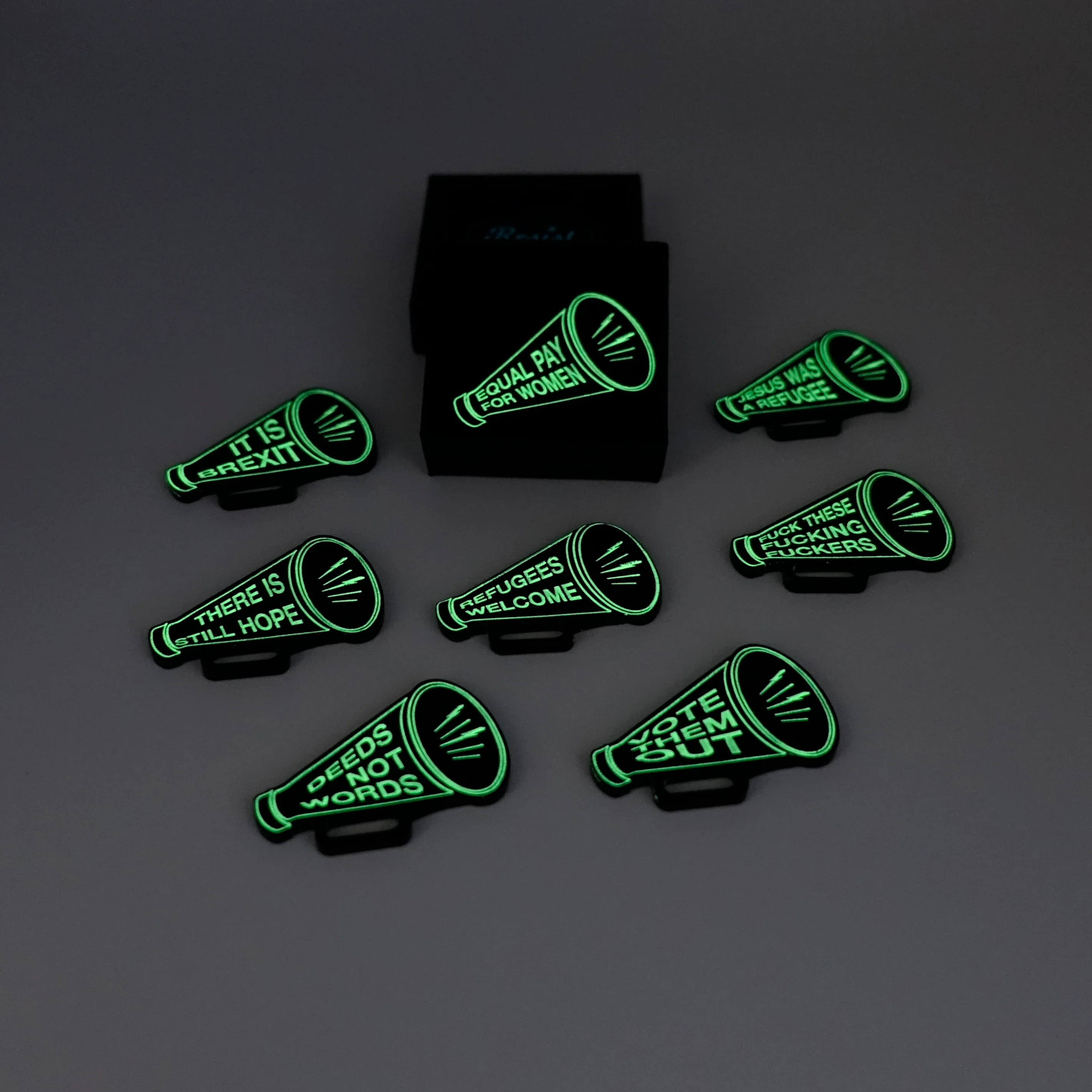Fascism running wild, British businesses unable to sell to Europe, crap veg on the shelves, a shrinking economy. Yes, it is bloody Brexit and here's a Megaphone brooch to shout into the abyss.