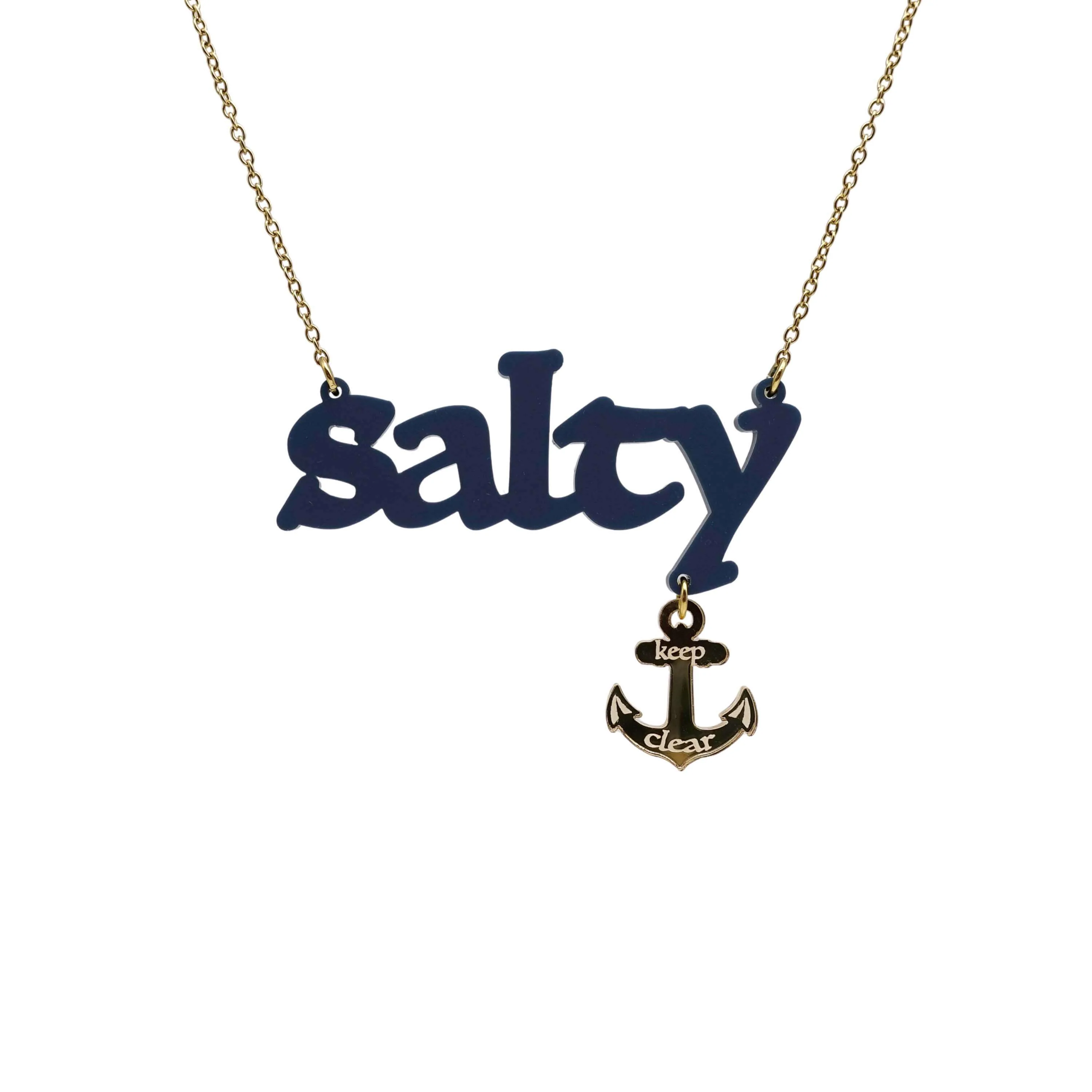 Here is a necklace to celebrate your saltiness, with an anchor etched with the words, 'keep clear' toĀ warn others to give you a wide berth :-)